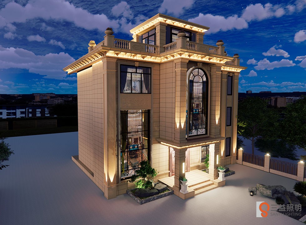 別墅燈光采用3D漫游設(shè)計(jì),燈具采用專(zhuān)業(yè)工程款瓦楞燈、洗墻燈、LED投光燈、定制柱頭燈、壁燈、草坪燈等,整體燈光營(yíng)造浪漫、溫馨的環(huán)境。