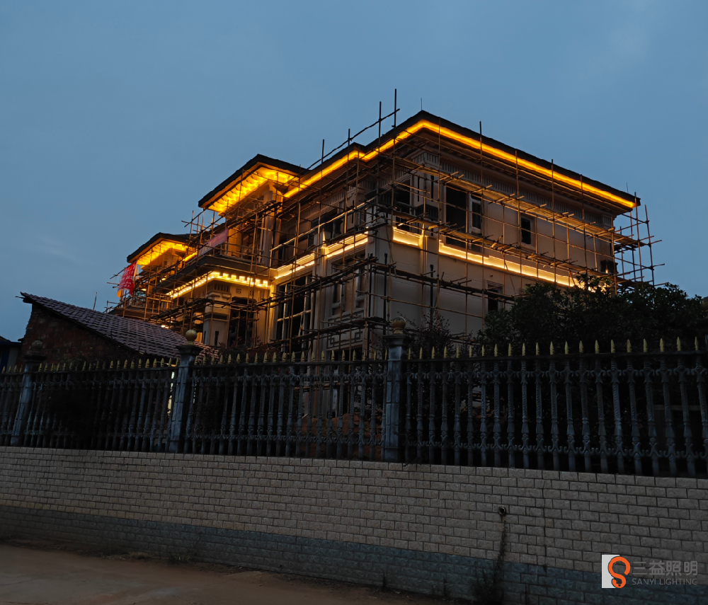 高新區(qū)謝林港鎮(zhèn)何總別墅燈光亮化施工何總別墅采用洗墻燈,投光燈對墻體墻托、柱子進(jìn)行燈光布置,增強(qiáng)別墅夜景氛圍,使別墅大氣又不張揚(yáng)。
